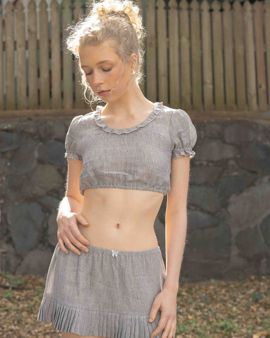 Pleat Puff Sleeve Crop