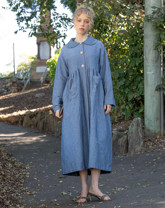 Nina Linen Trench Coat - Denim Blue
