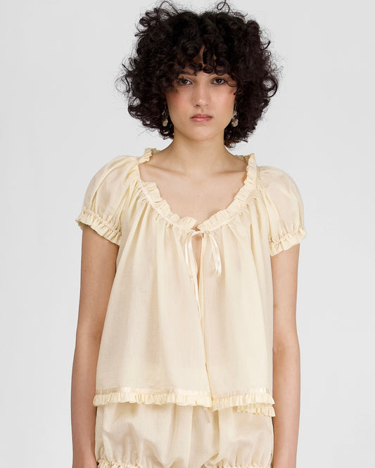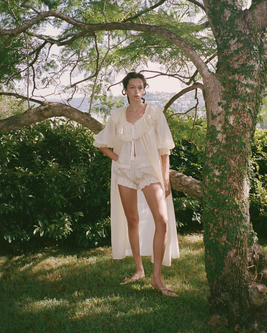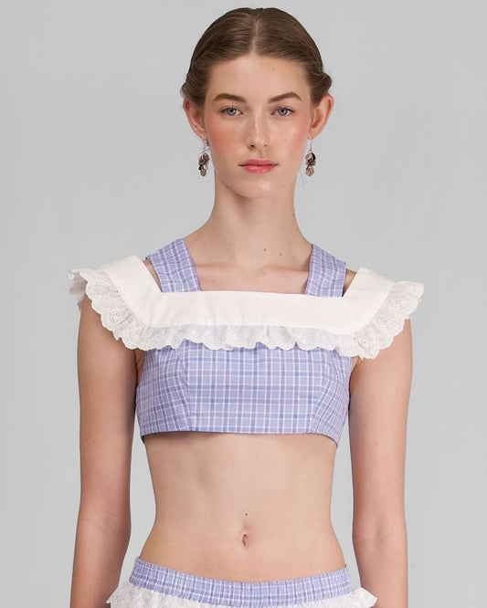 Lace Waist Bloomer Shorts - Sky Blue Check