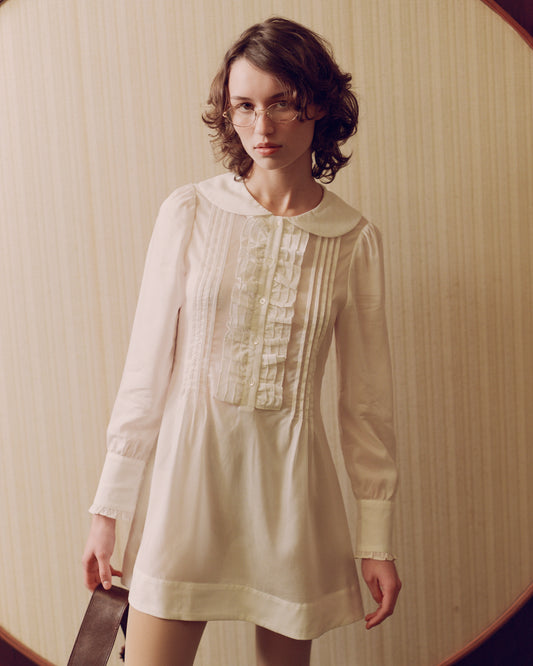 BEST SELLERRuffle Placket Mini Dress - White