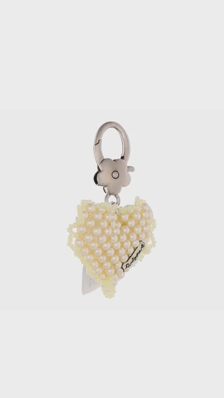 • A cushion-style heart key ring crafted with citrine-colored imitation pearl beads
