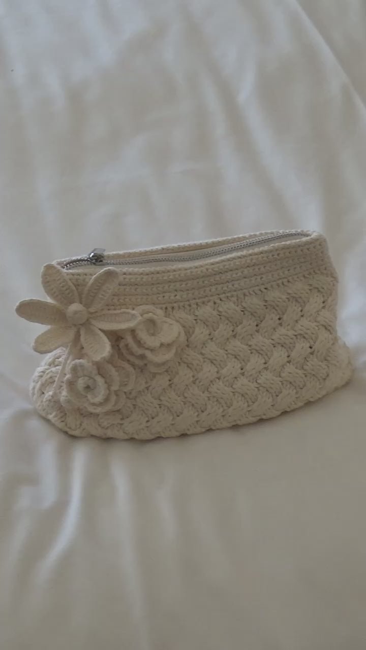 Crochet Garden Cosmetics Bag - Porcelain