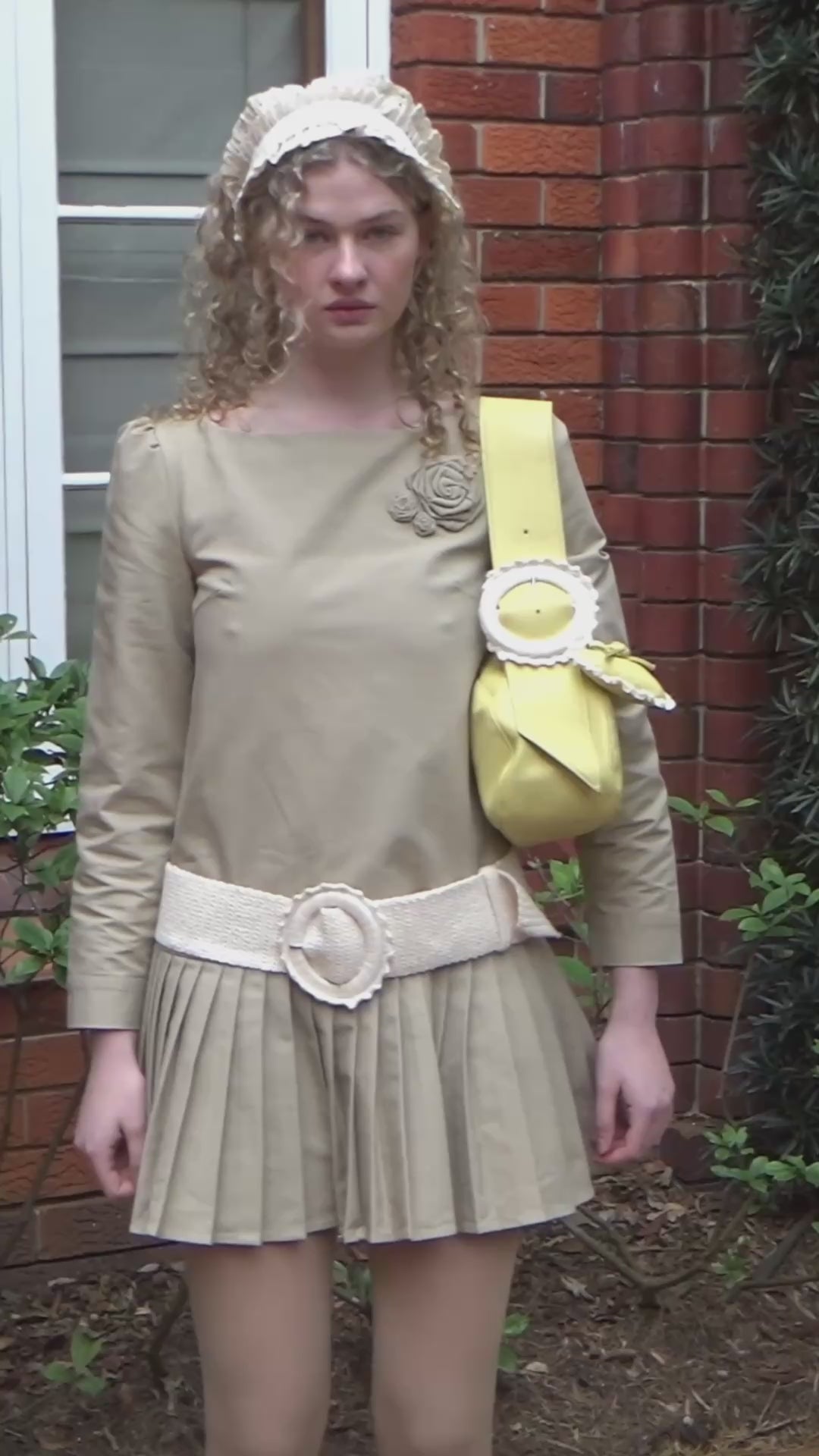 Dropwaist Pleat Dress - Fawn