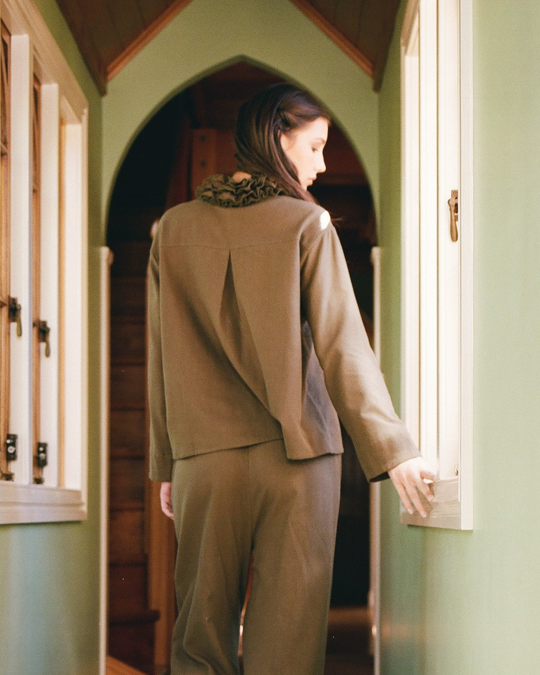 Made from 100% cotton and stitched with 100% organic cotton thread. Natural shell buttons.