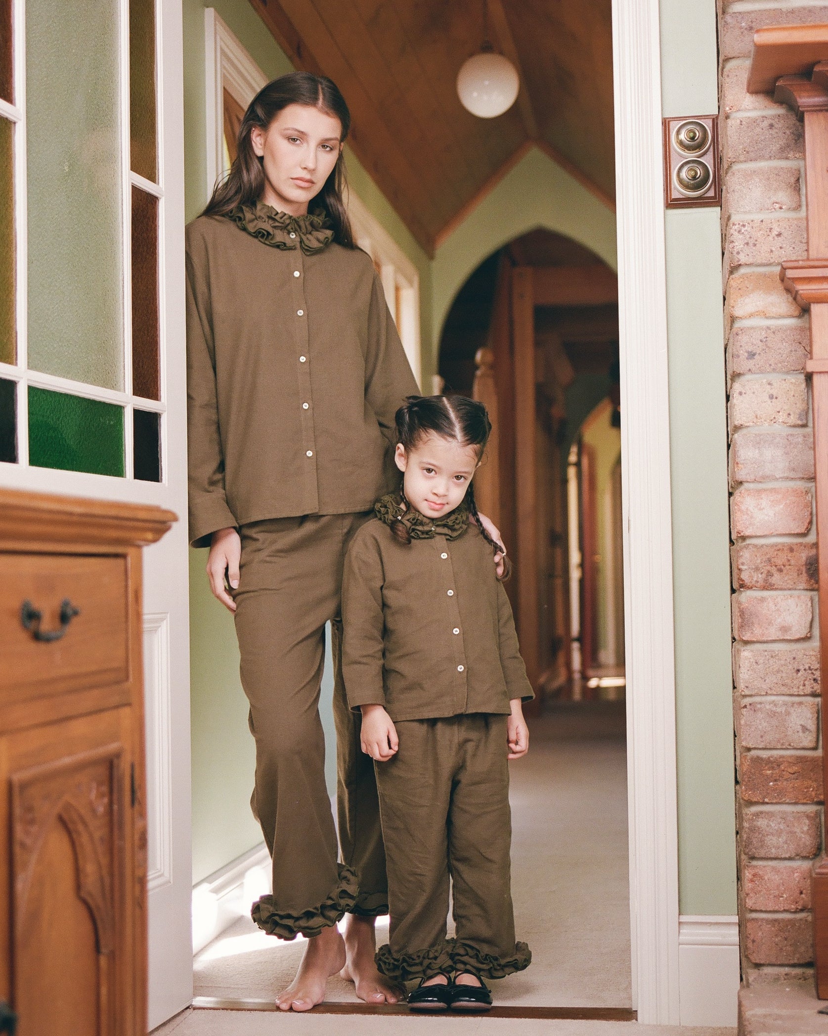 Flannel Ruffle Blouse - Eucalyptus