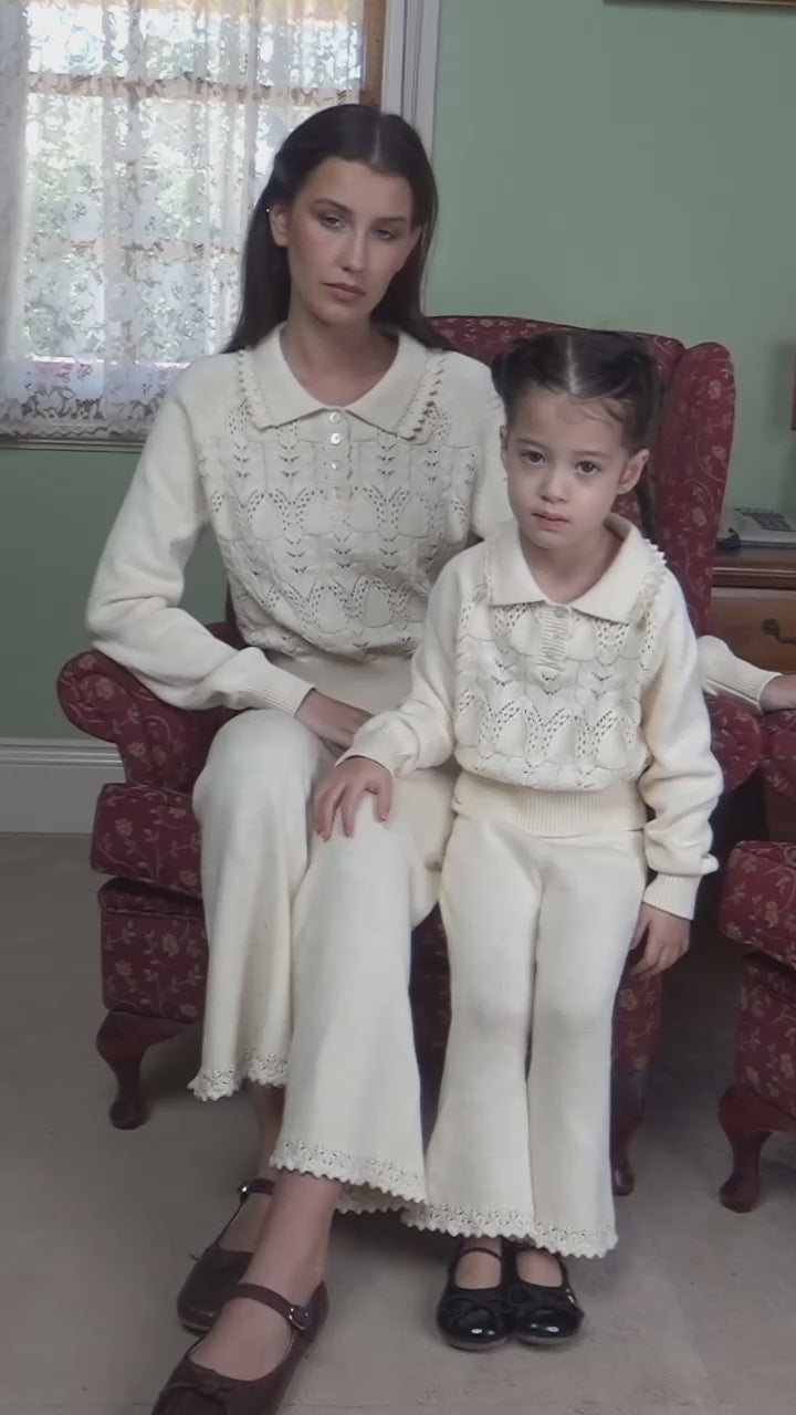 Mini Buttoned Lace Knit Pullover - Porcelain