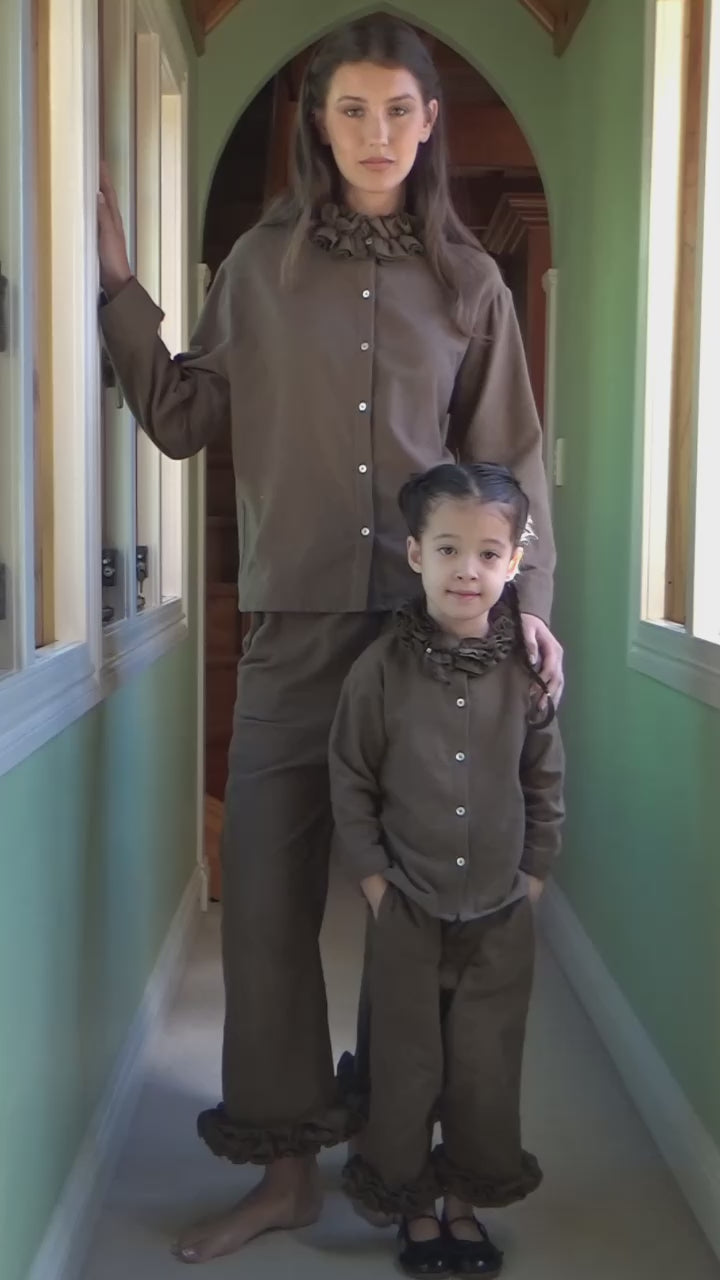 Mini Flannel Ruffle Blouse - Eucalyptus