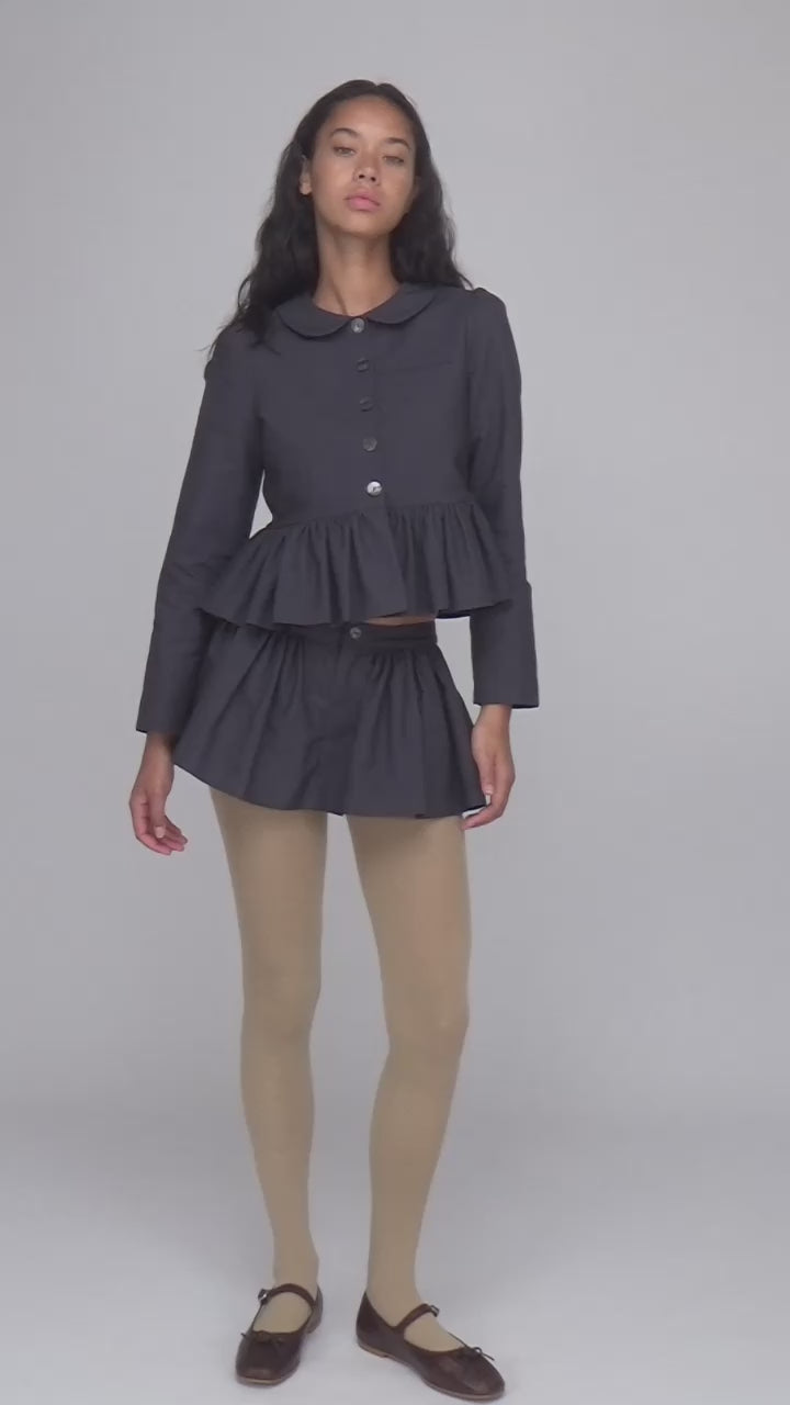 Gathered mini skirt with hidden built-in shorts for comfort.