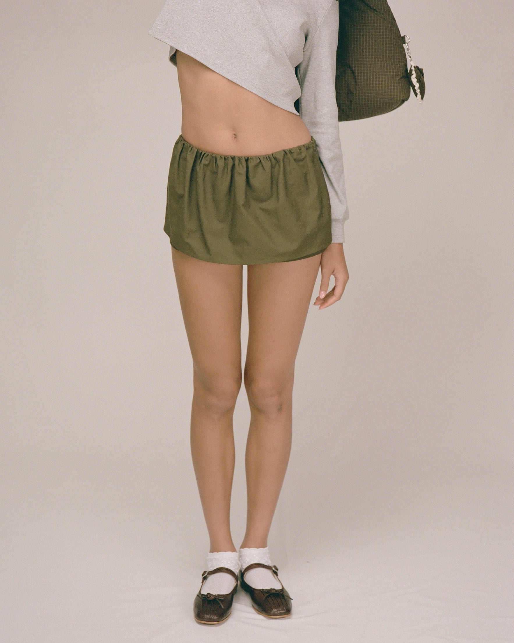 Gathered skirt overlay with built-in fitted shorts for full coverage.